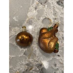 OWC Old World Christmas Sloth Glass Blown Ornament Kiwi Fruit LOT of 2 2018