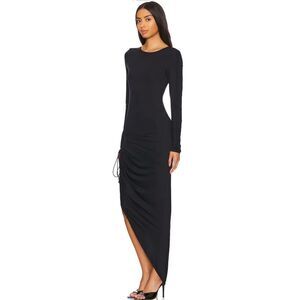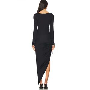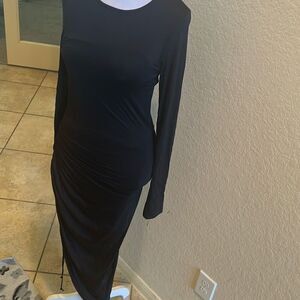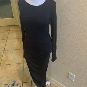 OW Collection Size M Delilah Long Sleeve Midi Dress Black High Slit Eveningwear