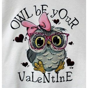 OWL BE YOUR VALENTINE Sz Large 10/12 Pink 3/4 Raglan Sleeve Valentine's Day Tee