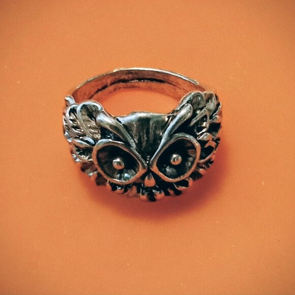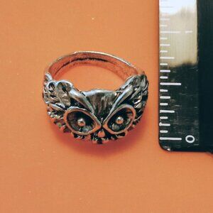 Vintage... Rustic...Handcrafted...OWL Ring...size 9.5...unisex...5/8"H...non-ferromagnetic metal...silver-toned...no maker marks or IDs...pre-loved ...in good condition.