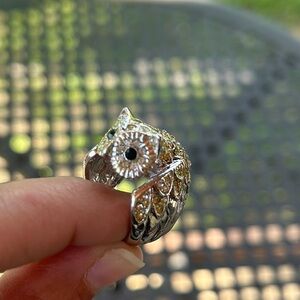 Owl ring, size 8, metal material, silver with gold diamonds. Fits snug. Worn a few times, in great condition.