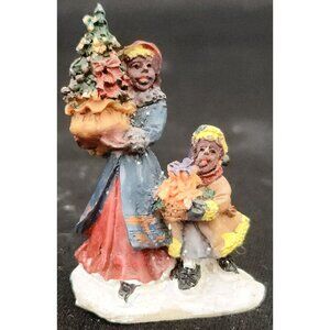 OWell African American mom child & vendor candy cart Christmas Village 2 figures