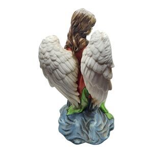 O'Well Hand Painted Fine Porcelain Kneeling Angel Figurine Holding Lantern EUC