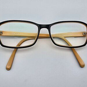 This listing is for authentic O&X New York OP-17 Gloss Black on Cream Eyeglasses Frame Japan 54-16-142. Current lens are unknown Rx prescription and will need to be replaced with lens of your choice (FRAME ONLY). Eyeglasses frame is in good pre-owned condition, (see photos). Size: 54-16-142. Made in Japan. Please see pictures to make your complete condition assessment.