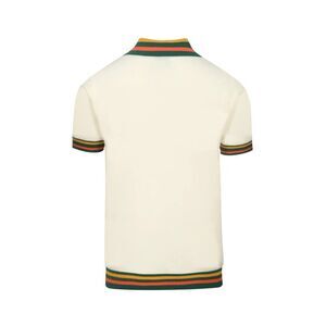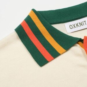 The Oxknit Men's Ivory Textured Knitted Sweater Cardigan in XL size offers a retro mod style with a collared neckline and short sleeves.
