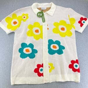 OXKNITSTORE Colorblock Retro 60s 70s Flowers Short Sleeve Sweater Cardigan 3XL