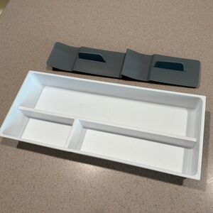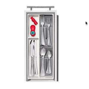 The OXO Good Grips Compact Utensil Drawer Organizer is perfect for kitchens with tight, shallow drawers. This organizer is divided into sections that ensure your utensils stay stacked to save space.