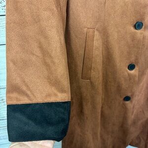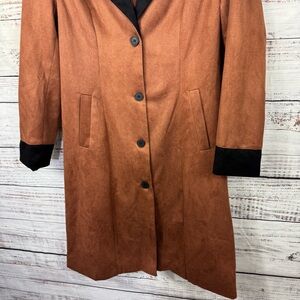 OYROSY Chic Women's size medium dressy Trench Coat with Black trim Details