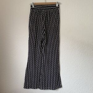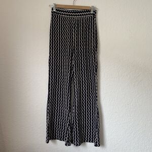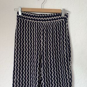 OYSHO Beach Pant XS Open Crochet Knit Navy Blue Cream Stretch Sheer Flare Boho
