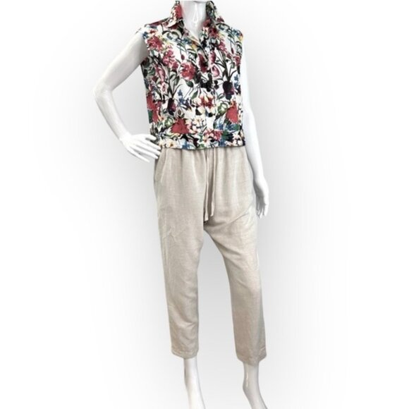 OYSHO Linen Blend Baggy Rise Pull On Pant