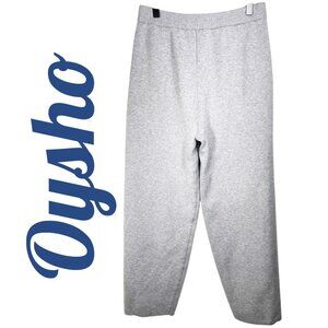 OYSHO STRAIGHT LEG CROPPED COZY KNIT SWEATER PANTS LIGHT GRAY LOUNGE, SIZE SMALL