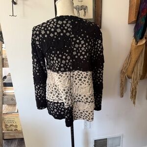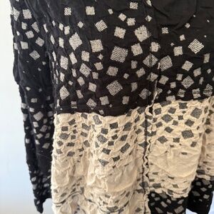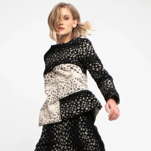 All the texture, forever the softness. This ultra cool pullover top is fitted in the bust and has a crew neck, long sleeves, A-line silhouette, and exposed seam detailing. Made in a midweight stretchy knit with a rippled texture and funky squares pattern.