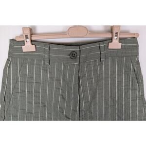 OZAI N KU Striped Wide Leg Bermuda Shorts M Olive Green M