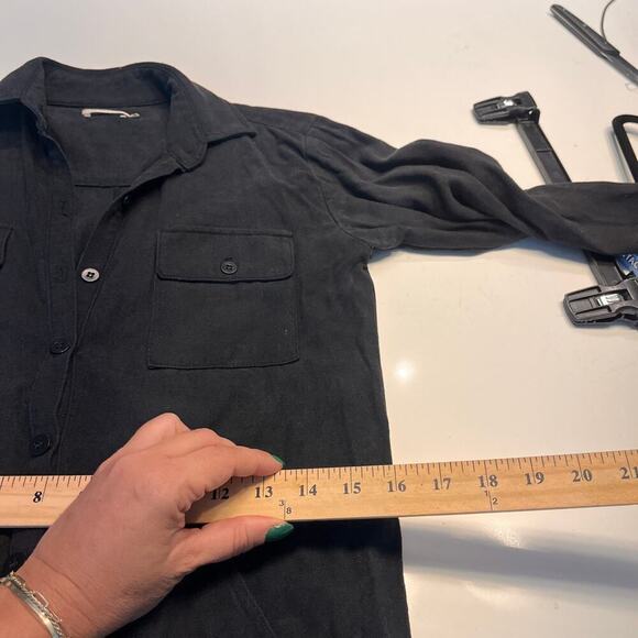 OZMA Black 100% Silk Long Sleeve Painters Button Front Jumpsuit Size Small