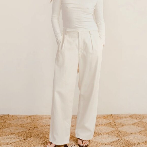 Apologies for the pink tint in my pics, It was a really sunny day and I couldn’t manage to get my phone to adjust. The color is a beautiful natural off white. Modeling images are from the OZMA website.