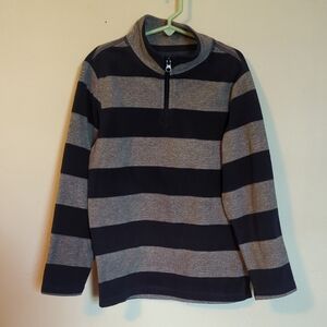 Oahkosh B'Gosh Blue and Gray Rugby Stripe Fleece Quarter Zip Boys Size 8