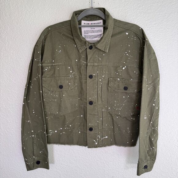 Oak & Acorn Jacket Womens Small Painter Cropped Cut Off Shacket Paint Splatter