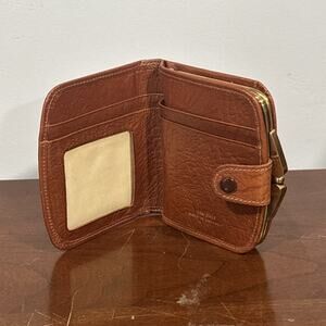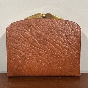 Oak Calf Brown Wallet Kiss Lock Change Purse Vintage