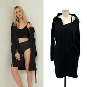 Oak + Fort Black Check Off Shoulder Shirt Dress Size Small