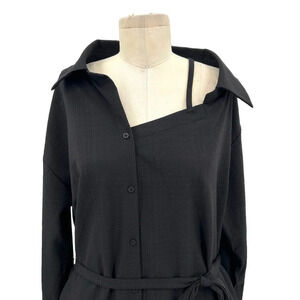Oak + Fort Shirt Dress w/ Off Shoulder Asymmetric Neck Detail