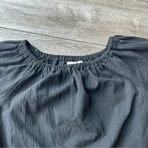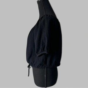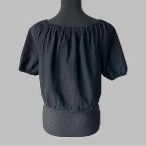 Oak + Fort Black Puff Sleeve Cropped Blouse