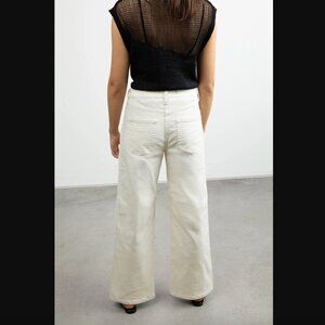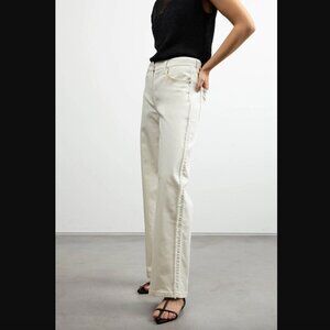 Oak + Fort Cream Straight Leg Twill Pant with Frayed Sides 4