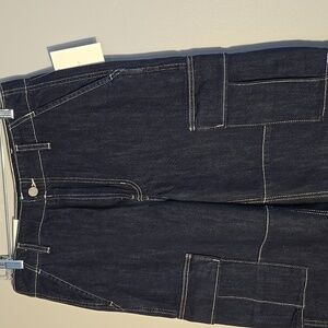 Oak + Fort Dark Blue Mid-Rise Long Length Organic Cotton Cargo Jeans Size 28