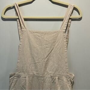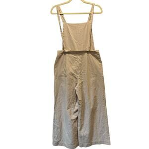 Oak + Fort Lagenlook Neutral Relaxed Fit Wide Leg Striped Jumpsuit Overalls Sm