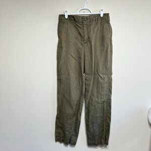 Oak + Fort Olive Green Straight Pants Linen 30 Women