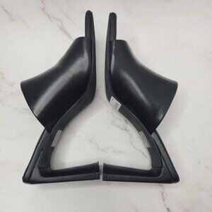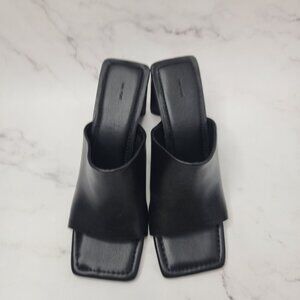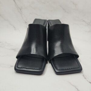 Oak & Fort Peep Toe Mule Black Leather Sandal Y2K Square Block Heel Size 9