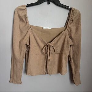Oak + Fort Tan Cropped Sweetheart Blouse Size Small EUC