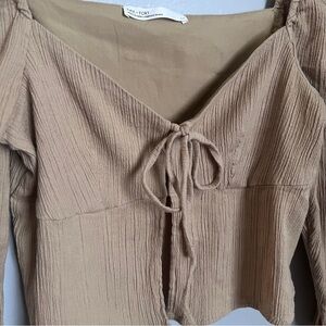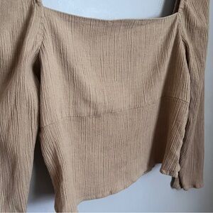 Crinkle-textured top and square neck long sleeve crop top. Known for its minimalist design. Cotton/linen blend, polyester lining. Like new, no flaws.