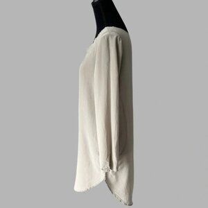 Oak Fort Taupe Pure Silk Laser Cutout Long Sleeve Shift Dress