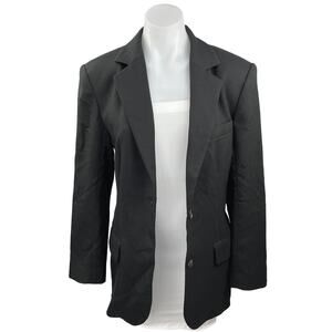 Oak + Fort Women's Black Button Front Long Sleeve Career Blazer Coat Jacket Sz S