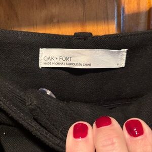 Oak + Fort wide leg trouser in black. High rise. Front pleats. Side pockets. Women's size 6. Gently used with no flaws.