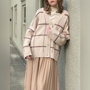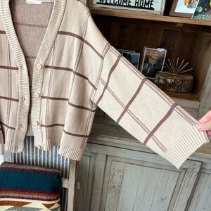 EUC Oak + Fort women’s oversized plaid cardigan size medium. This cardigan is perfect for the fall! In the pumice stone and fossil color way, this cardigan is nice and thick, big buttons at the front. Check photos for measurements in inches!