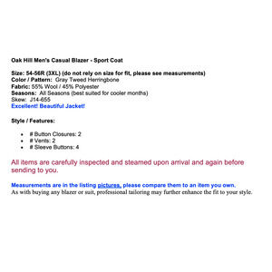 Oak Hill Mens 54-56R 3XL Gray Herringbone Tweed Blazer Sport Coat Jacket