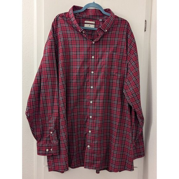 Oak Hill Red Holiday Plaid Wrinkle-Free Button-Down Shirt 100% Cotton Mens Size