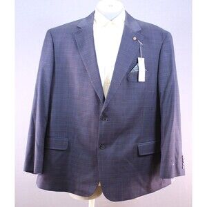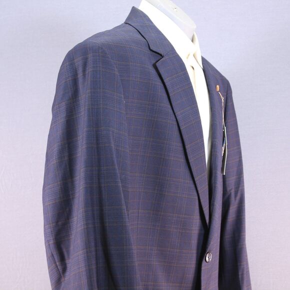 Oak Hill Sport Coat Mens Blue Glen Plaid Stretch Blazer Pocket Square 3XL 54-56