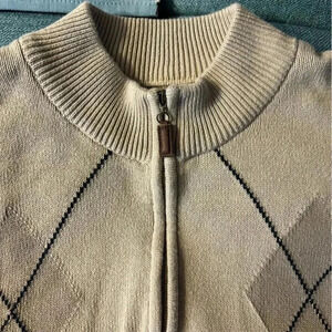 Elevate your wardrobe with this Oak Hill sweater, a stylish and comfortable essential for any fashion-forward gentleman. The beige color complements any outfit, while the geometric pattern and cable-knit design add a touch of classic charm. Crafted from high-quality cotton knit with a hint of stretch, this sweater offers a practical yet fashionable look with its long sleeves, mock neck, and 1/4 zip cowl neck. The 1/4 zip and zipper accents lend a modern edge, ensuring this vintage-free design remains timeless. Available in size 3XL, this must-have sweater is an ideal fit for larger men who value both style and comfort. Order now and make a statement at your next event.