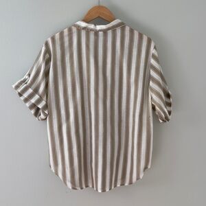 Oak Hill Vintage Beige/White Striped Short Sleeve Button Up Shirt