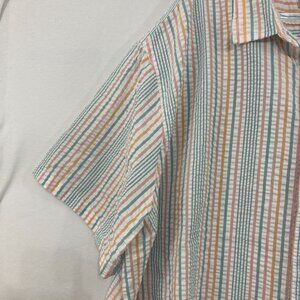Oak Hill size 4X Multi Color Striped Seersucker Relax Short Sleeve Button Down