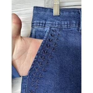 Oak & Poppy Denim High-Rise Capri Pants Womens 14 Blue Stretch Embroidered Pockets