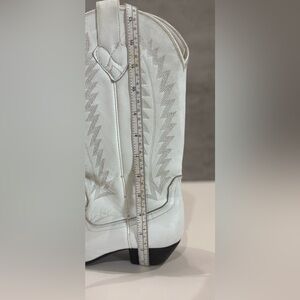 Oak Tree Farms White Leather Western Pull On Snip Toe Boots Size 6.5