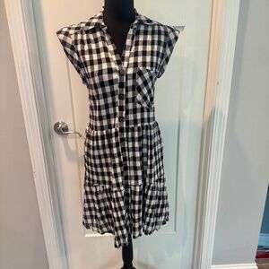 Oak & Trellis Mini Shirtdress, M, NWOT, Black/White Checker print