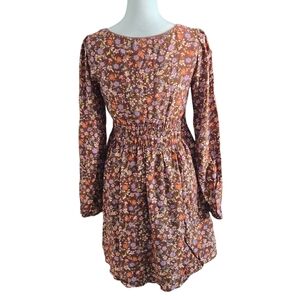 Oak & Trellis Women's XL Cappuccino Floral Long Sleeve Smocked Peasant Dress (NWT)
