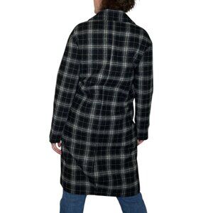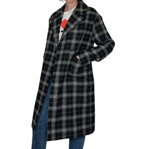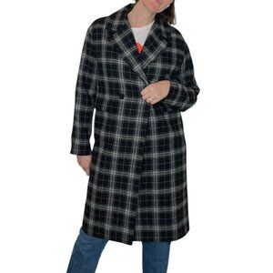 Oak and Fort Oversized Plaid Wool Blend Coat Double Breasted Black Gray Small