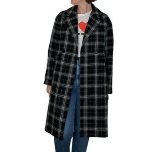 Oak + Fort Oversized Plaid Wool Blend Coat Double Breasted Black Gray Small