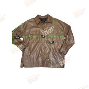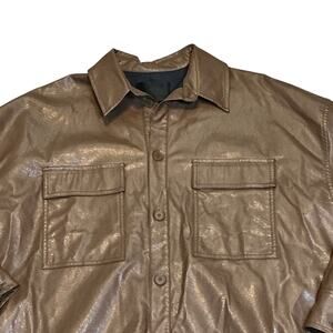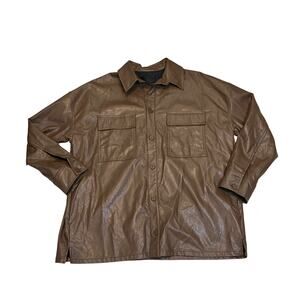 Oak+Fort Faux Leather Brown Shirt Jacket Front Button Long Sleeve Mens XS/S NWOT