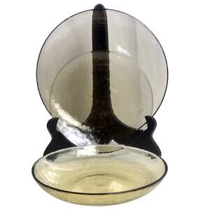 Elevate your dining experience with this stunning Oake Sunstone Shaded Glass 3-piece place setting! This service for four includes 12 pieces in total, perfect for adding a touch of elegance to your table. Each piece features a beautiful shaded glass design that catches the light and creates a warm, inviting ambiance. The set is in excellent condition and ready to impress your guests at your next dinner party. The individual pieces measure: